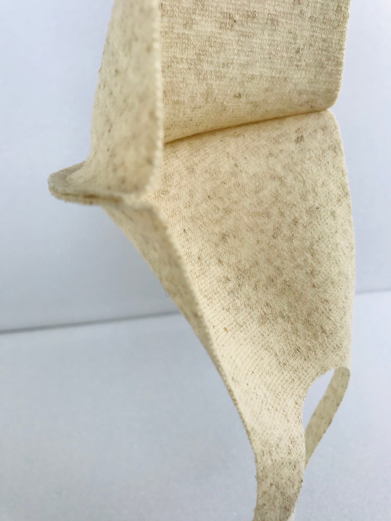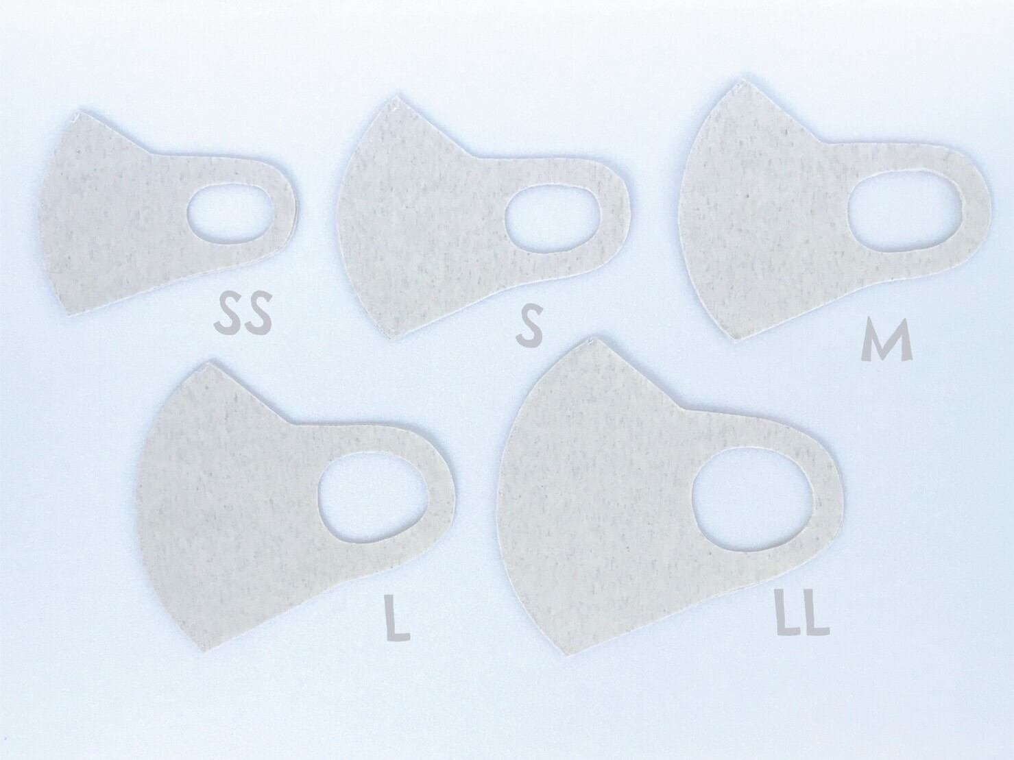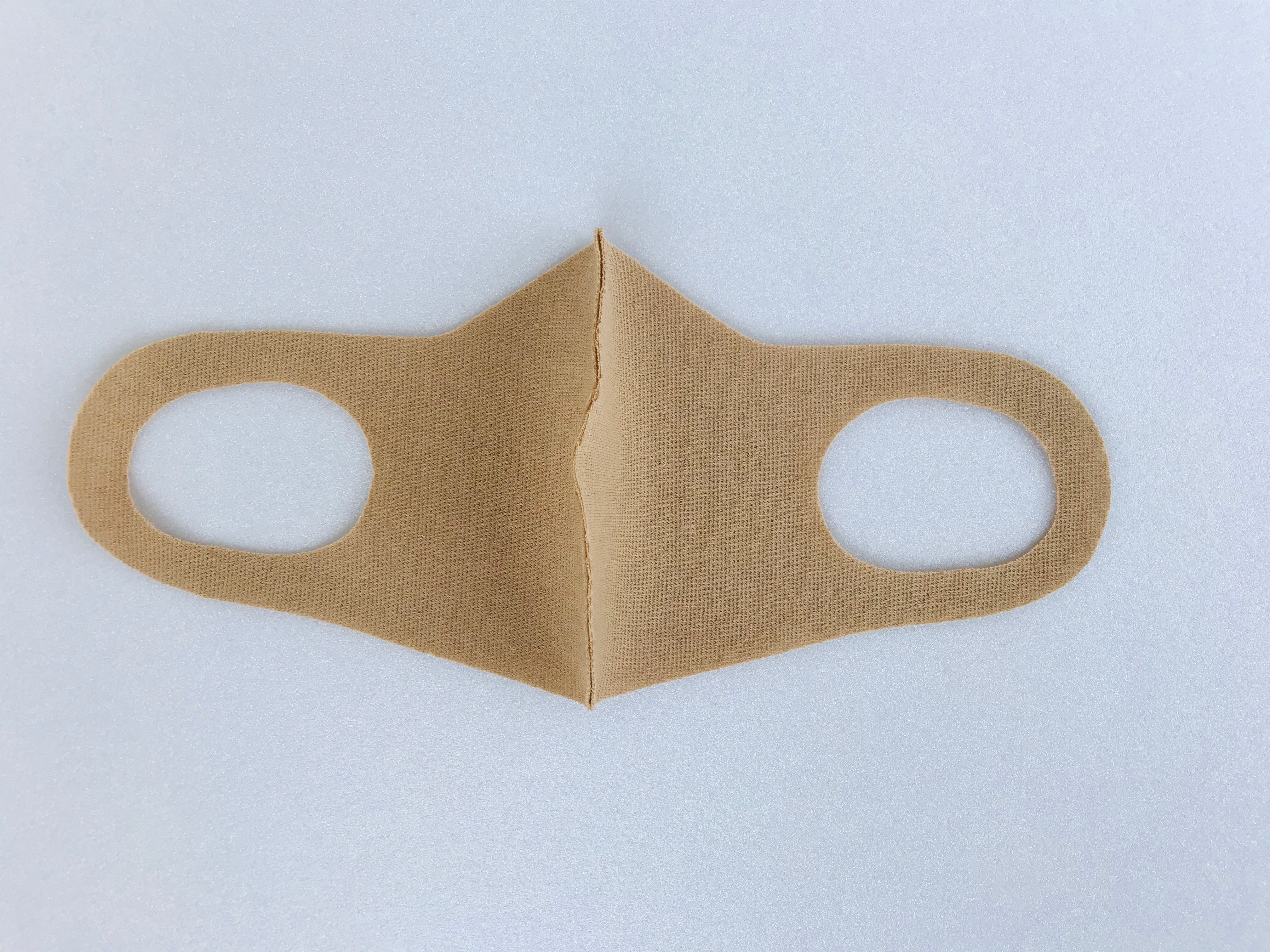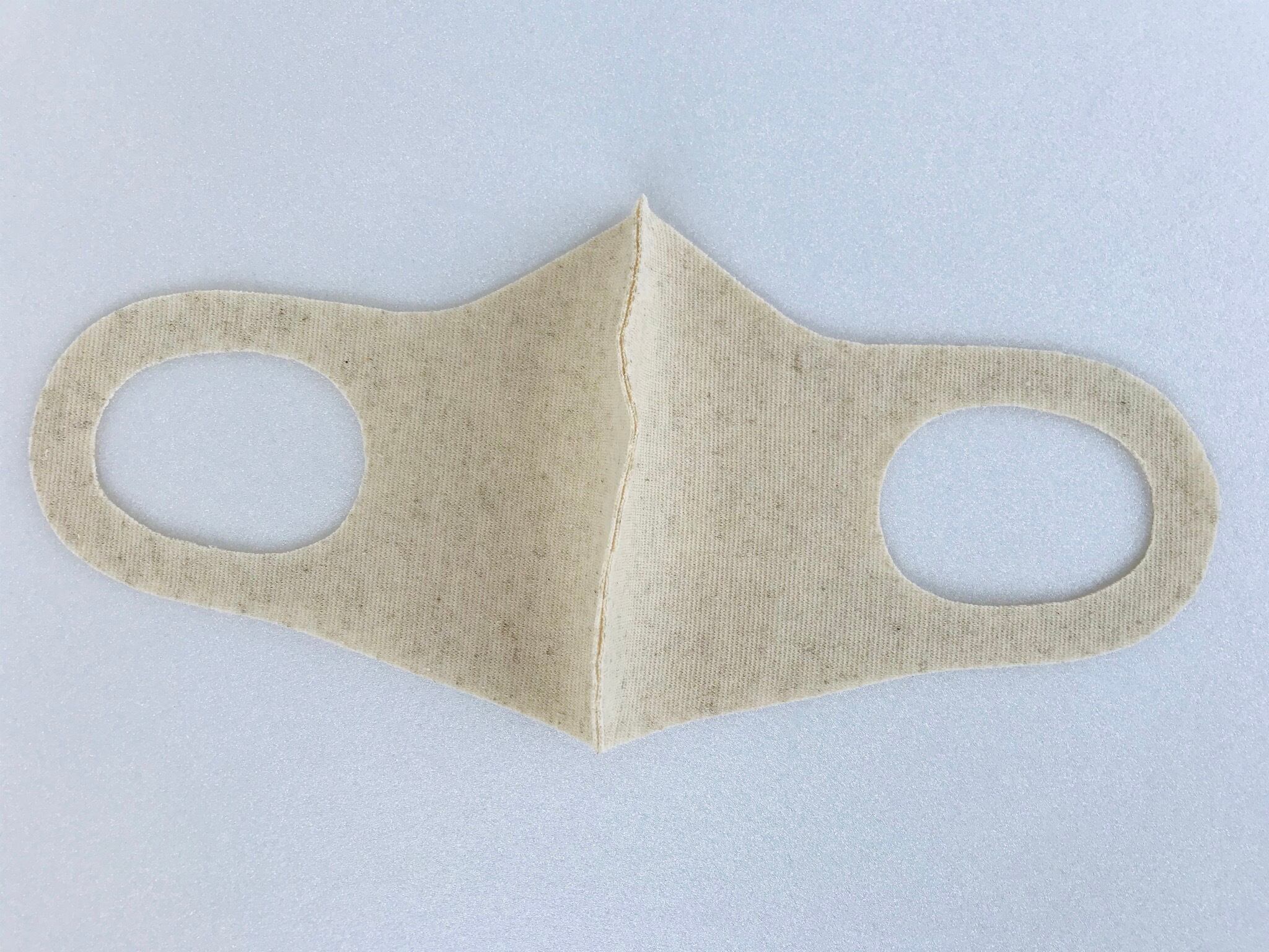 ニット生地を曲線でカット。極力縫製を省き、伸縮性を重視。耳への負担を軽減して、長時間の着用も苦にならない様デザインされています。上下を変えられる仕様でカットを山型(眼鏡着用時に曇りにくい)フラット(小顔効果でスッキリ)お好みで使い分けができます。