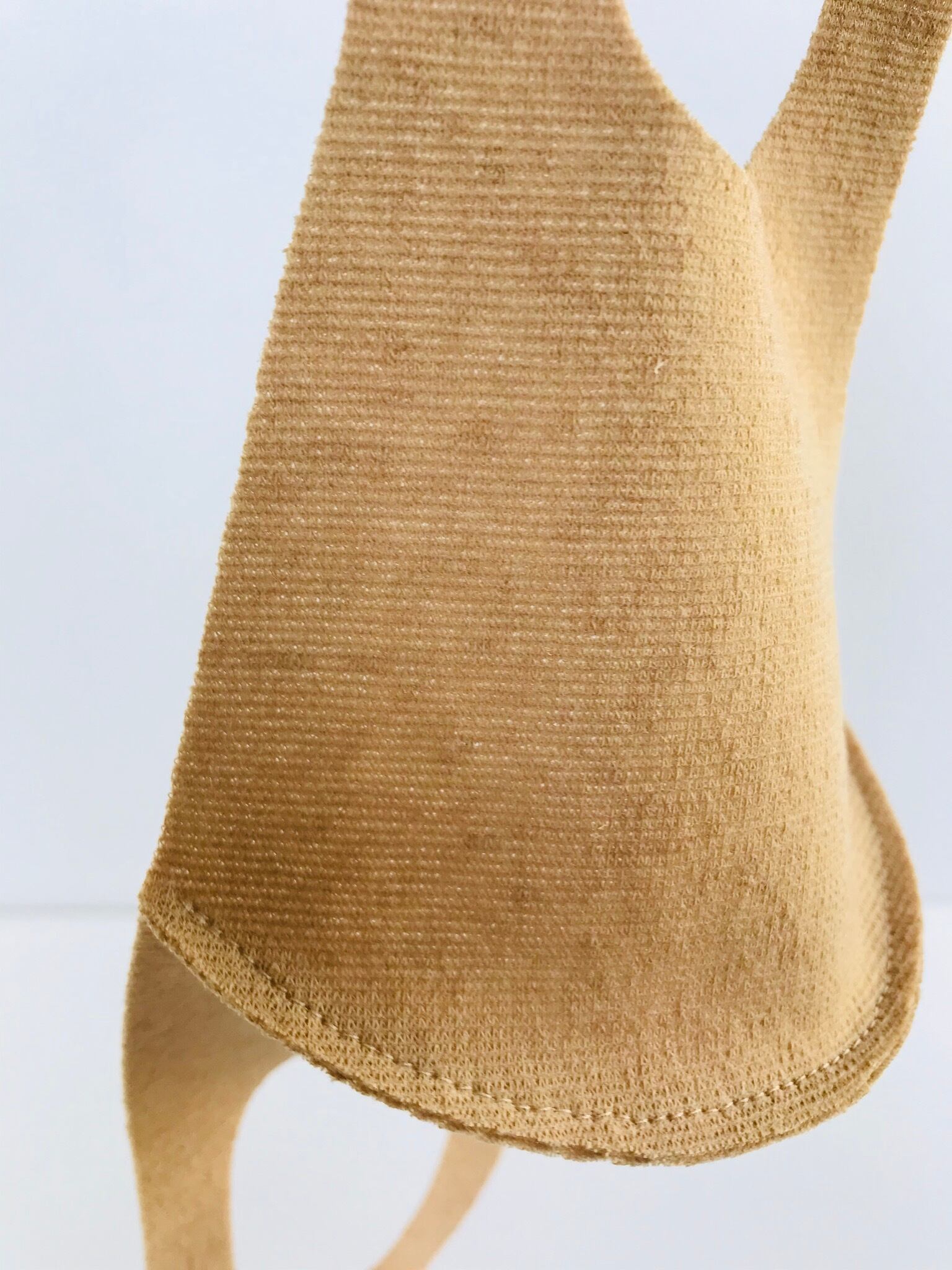 ●ご使用いただきますと特に耳の部分に亀裂が入ります。耳への負担を軽減する目的で縫製していません。予めご了承下さい。