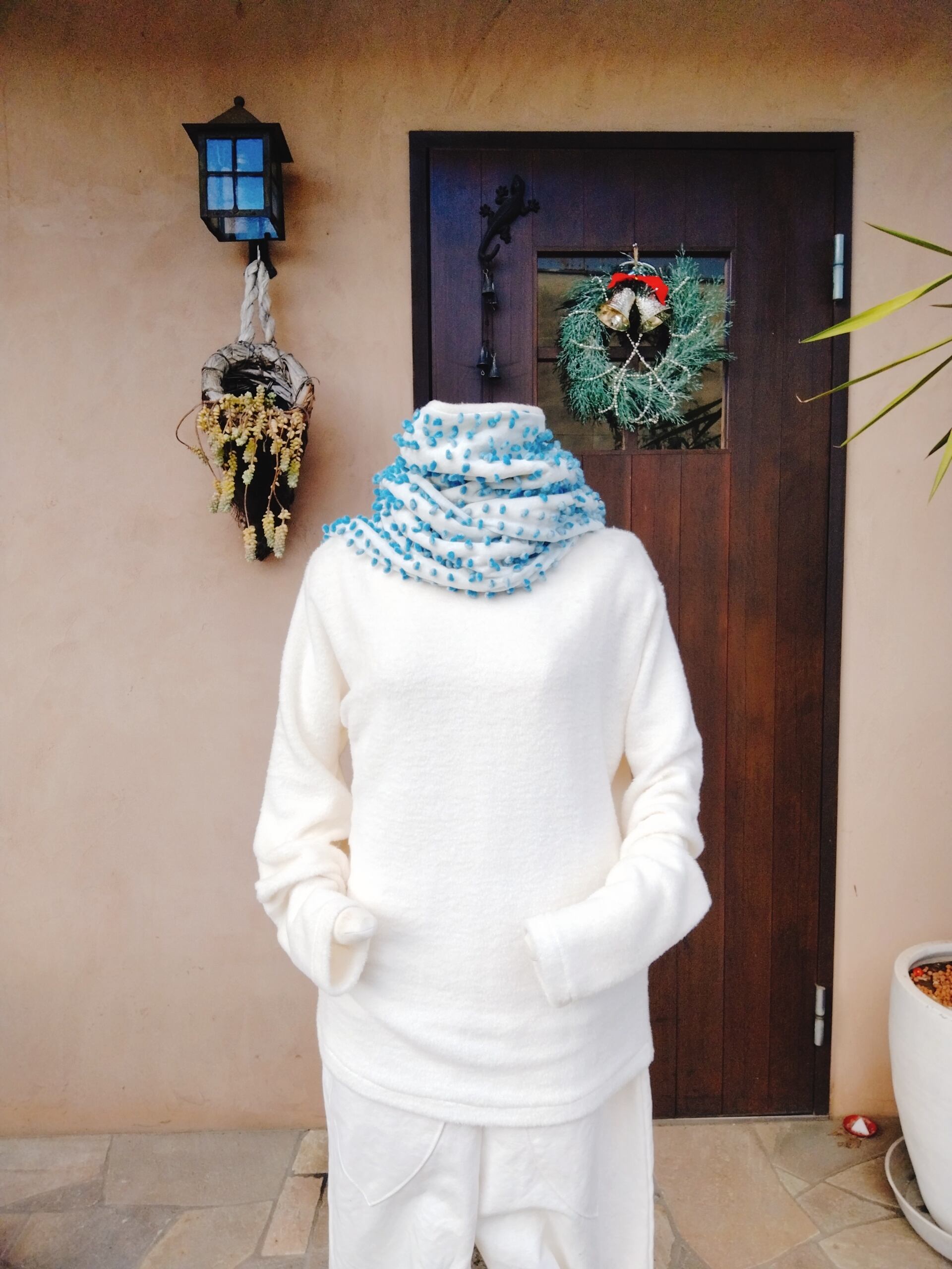 ボンボンはウール素材、ボアはコットンシルクの起毛素材で肌触り抜群
