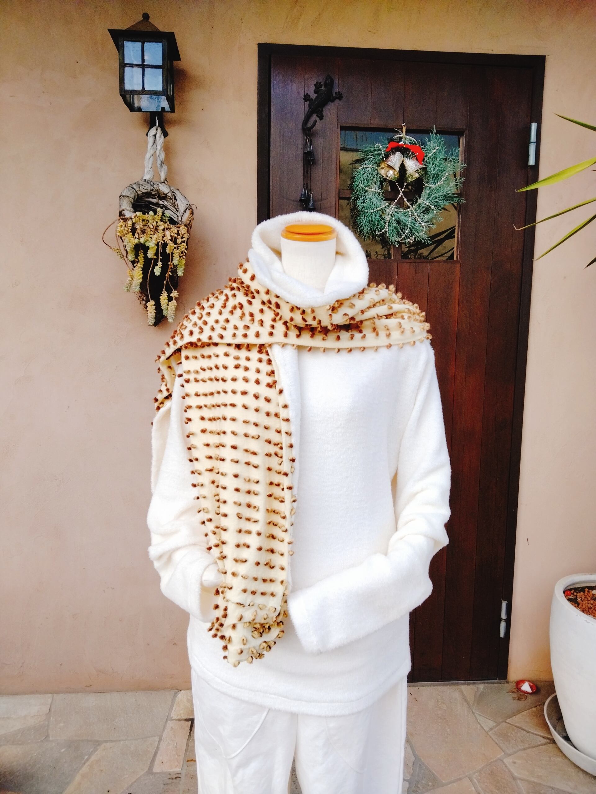 他にないボンボン生地が可愛いボアフリースマフラーはいかがですか
